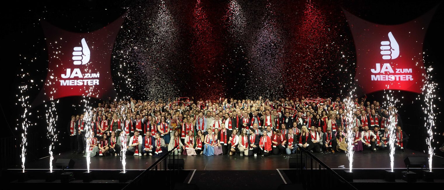 BU: Die Meisterinnen und Meister in der Volkswagenhalle Braunschweig (© Fotostudio Sascha Gramann).