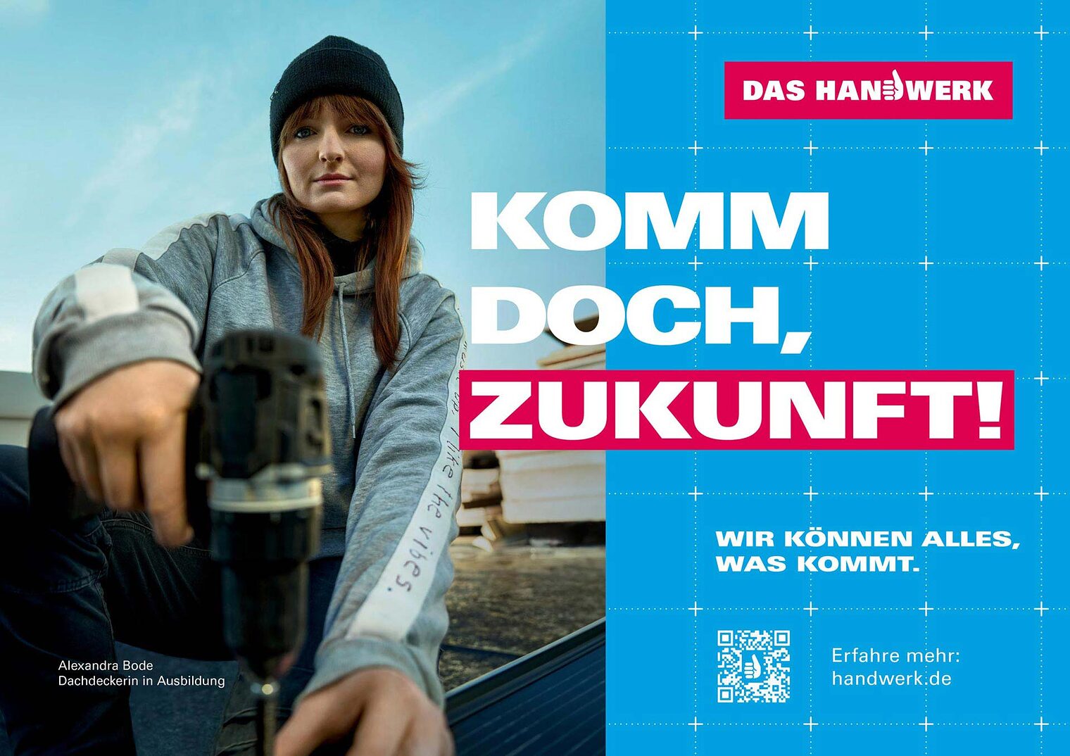 Die Kampagne soll nicht nur das Bewusstsein für die Bedeutung des Handwerks stärken, sondern auch verdeutlichen, dass handwerkliche Berufe eine sehr gute und langfristige Perspektive bieten. Gerade in Zeiten des technologischen Wandels bleibt das Handwerk ein Berufsfeld, das nicht durch künstliche Intelligenz ersetzt werden kann – und sich gleichzeitig stetig weiterentwickelt. Die Themen Innovationskraft, Zukunftssicherheit und Vielfalt der über 130 Ausbildungsberufe im Handwerk spiegeln sich auf den Werbemotiven sowie in informationstieferen Medien wie zum Beispiel der Website www.handwerk.de wider.